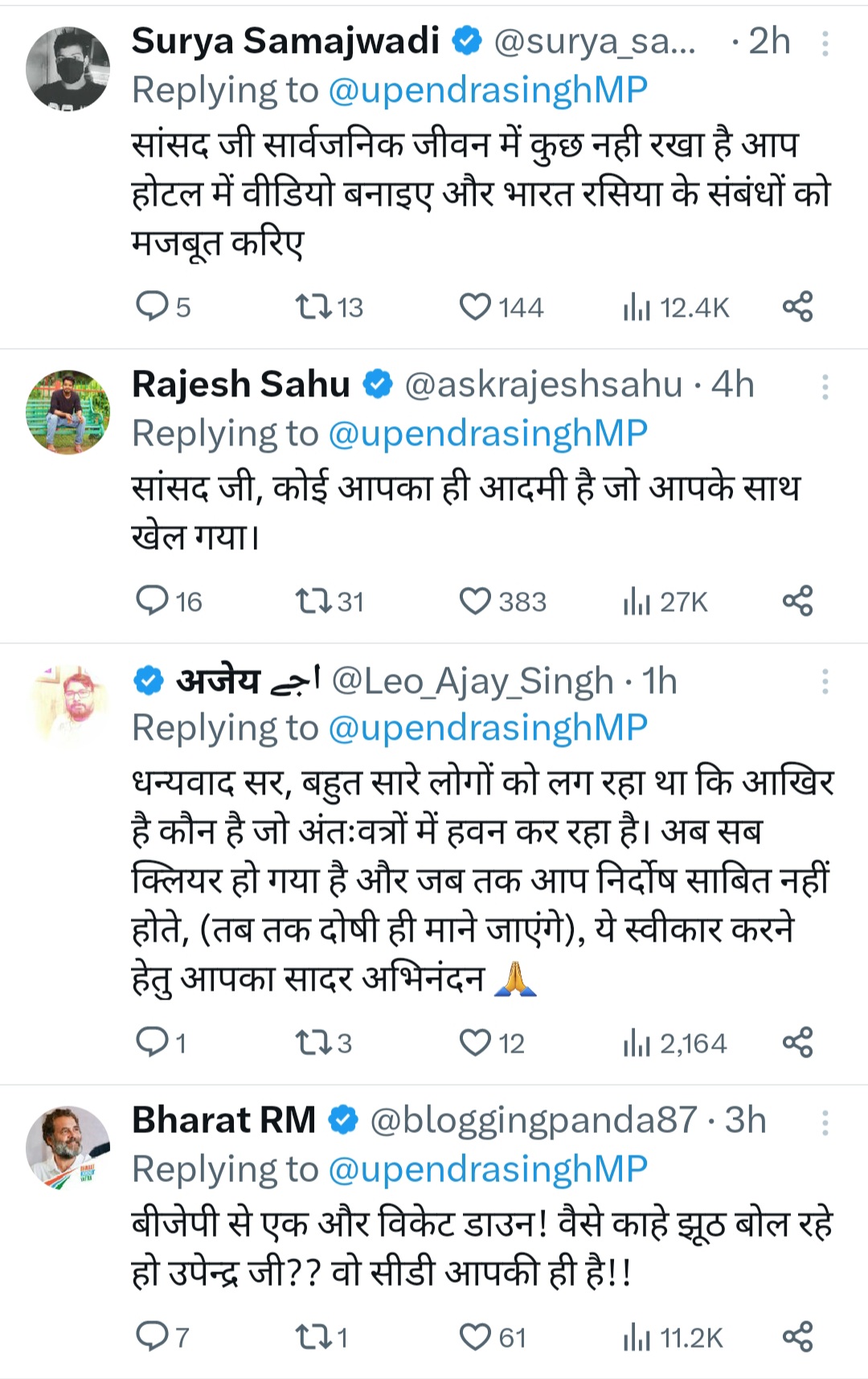 भाजपा सांसद उपेन्द्र सिंह रावत भले ही वायरल वीडियो को एडिटेड और AI तकनीक से निर्मित बता कर जांच की मांग कर रहे है लेकिन उनकी यह दलीलें वायरल वीडियो देखने वालो के गले नही उतर रही है। उपेन्द्र रावत के पोस्ट पर सोशल मीडिया यूजर्स तरह तरह के कमेंट्स कर रहे है। भाजपा से जुड़े यूजर्स जहाँ उन्हें निर्दोष बताते हुए उनके साथ खड़े होने की बात कर रहे है वही ज्यादातर लोग वायरल वीडियो को असली बताते हुए खूब चुटकी ले रहे हैं। कुछ यूजर्स ने तो यह तक कह डाला कि शुरू शुरू में ‘कुल्हड़ पिज़्ज़ा’ वाले कपल ने भी ऐसा ही कहा था लेकिन बाद में उन्हें माफी मांगनी पड़ी थी।