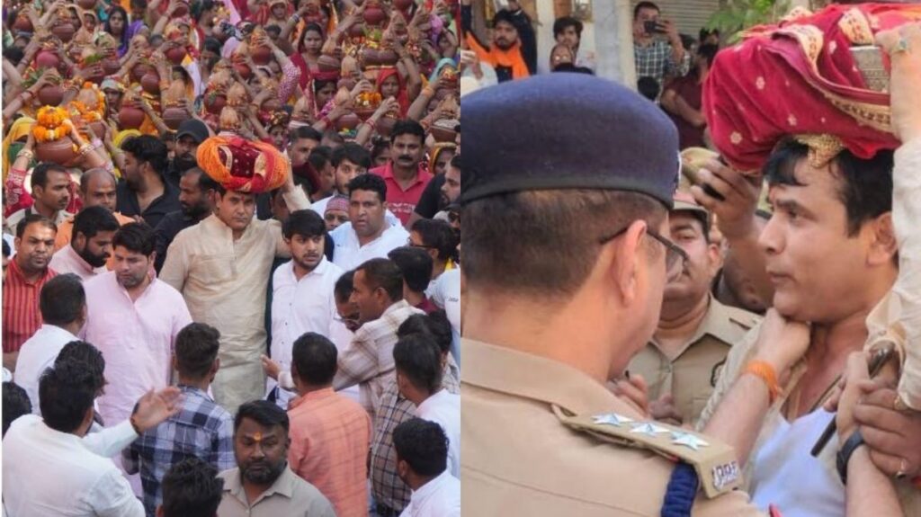 कलशयात्रा रोकने से भड़के बीजेपी विधायक ने पकड़ लिया पुलिस अधिकारी का गला, जय श्रीराम का नारा लगाकर समर्थकों ने भी पुलिस से की हाथापाई…VIDEO