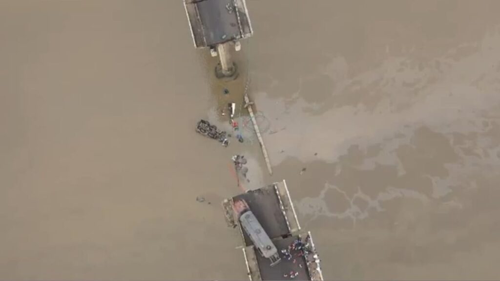 शुरुआती जानकारी के अनुसार, जब पुल ढहा, तब दो ट्रक, एक बोलेरो एसयूवी और एक पिकअप वैन सहित कुल चार वाहन पुल पार कर रहे थे, जो अचानक नदी में समा गए। घटना के वीडियो में दो खंभों के बीच पुल का पूरा स्लैब ढहता हुआ नजर आ रहा है।