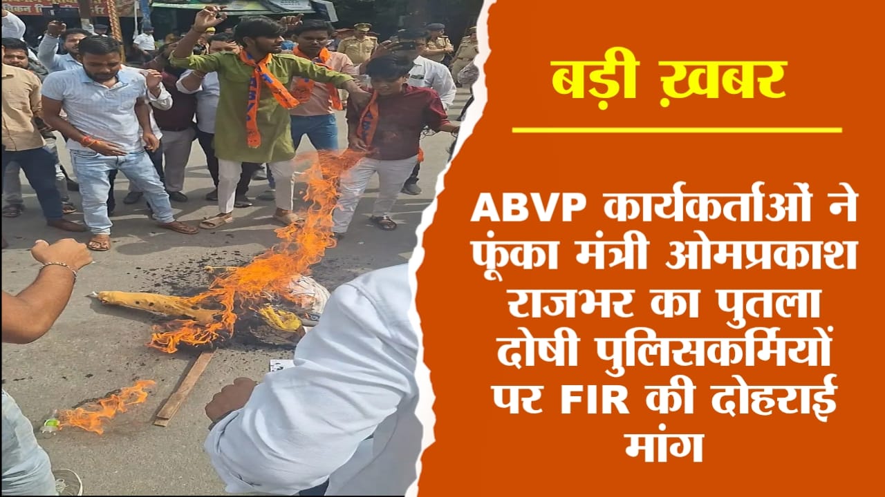 Barabanki: लाठीचार्ज के दोषी पुलिसकर्मियों पर FIR की मांग पर अड़े ABVP कार्यकर्ता, मंत्री ओमप्रकाश राजभर का भी फूंका पुतला