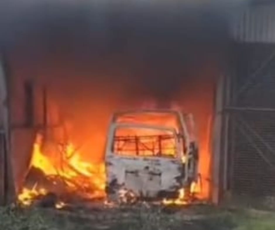 Barabanki: आग का गोला बनी गैराज में खड़ी मारुति वैन, सूचना के बाद भी नहीं पहुंची दमकल की गाड़ी, ग्रामीणों को खुद ही बुझानी पड़ी आग