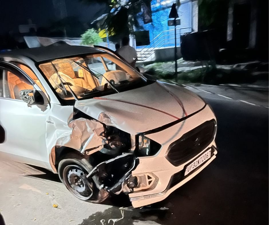 Barabanki: बिजली के खंभे से टकराई तेज़ रफ़्तार स्विफ्ट डिज़ायर कार — एयरबैग खुलने से बाल बाल बची कार सवार परिवार की जान
