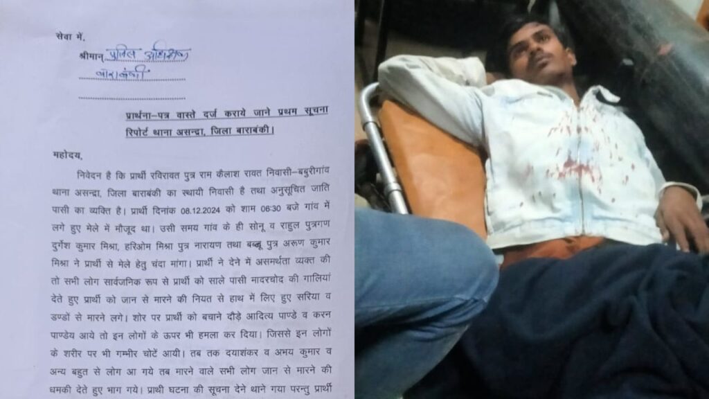 बाराबंकी ज़िले के असंद्रा थाना क्षेत्र के बबुरी गांव निवासी दलित जाति के युवक रवि रावत पुत्र राम कैलाश रावत का कहना है कि 8 दिसंबर 2024 को गांव के ही सती माता मंदिर परिसर में आयोजित मेले में शामिल था। सोनू मिश्र व राहुल मिश्र पुत्रगण दुर्गेश मिश्र मेले का चंदा मांगने लगें। असमर्थता जताने पर अपने साथी हरिओम मिश्र पुत्र नारायण व बब्बू पुत्र अरुण मिश्र के साथ जातिसूचक गालियां देते हुए सरिया व लाठी-डंडो से हमला कर दिया, जिससे मेले में भगदड़ मच गई। चीखपुकार पर आदित्य पांडेय, करन पांडेय, दयाशंकर व अभय बचाव में पहुंचे। उक्त लोगों ने उन्हें भी दौड़ा-दौड़ा पीट दिया। उनको भी चोटें आई है‌।