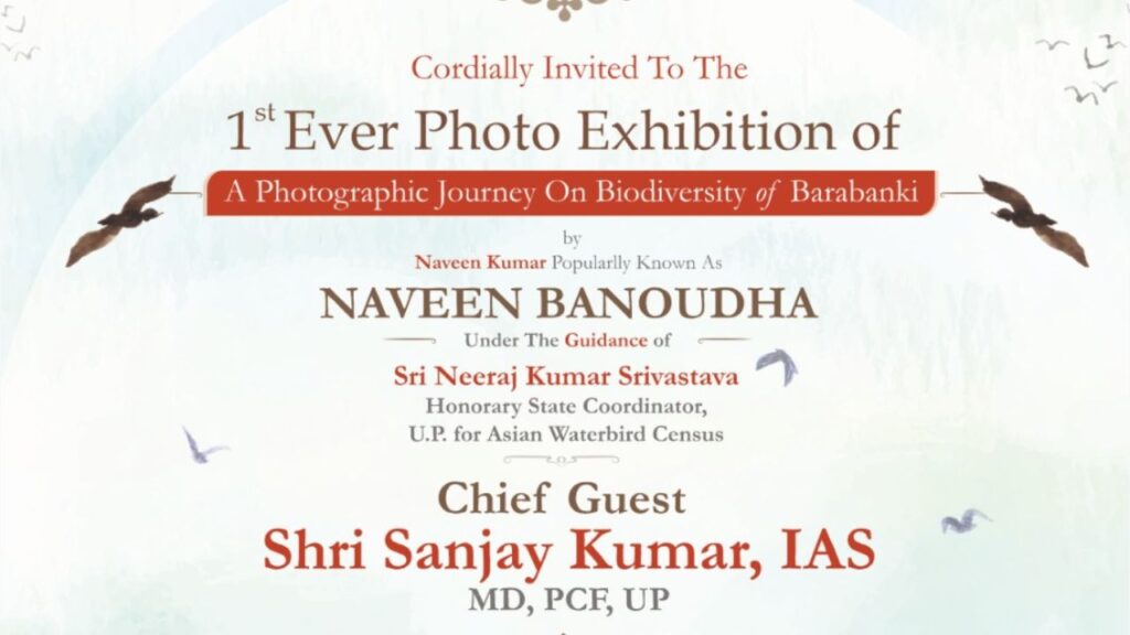 बाराबंकी की समृद्ध बायोडायवर्सिटी को अपने कैमरे से कैद करने वाले उत्तर प्रदेश सचिवालय सेवा के अधिकारी व वाइल्डलाइफ फ़ोटोग्राफर नवीन कुमार बनौधा, नगर में पहली बार एक फोटो प्रर्दशनी आयोजित कर रहे हैं। दिनांक 14 दिसंबर को सुबह 10 बजे से ऑफीसर्स क्लब में इसकी शुरुआत होगी। यह आयोजन 2 दिवसीय है और इसका समापन 15 दिसंबर की शाम सात बजे होगा। शनिवार को सुबह 10:00 बजे इस फोटो प्रदर्शनी का उद्घाटन यूपीपीसीएफ के एचडी संजय कुमार जी करेंगे। इस मौके पर विशेष सचिव उच्च शिक्षा सीपू गिरी, निदेशक पर्यटन प्रखर मिश्रा, डीएफओ आकाशदीप बधावन उपस्थित रहेंगे।