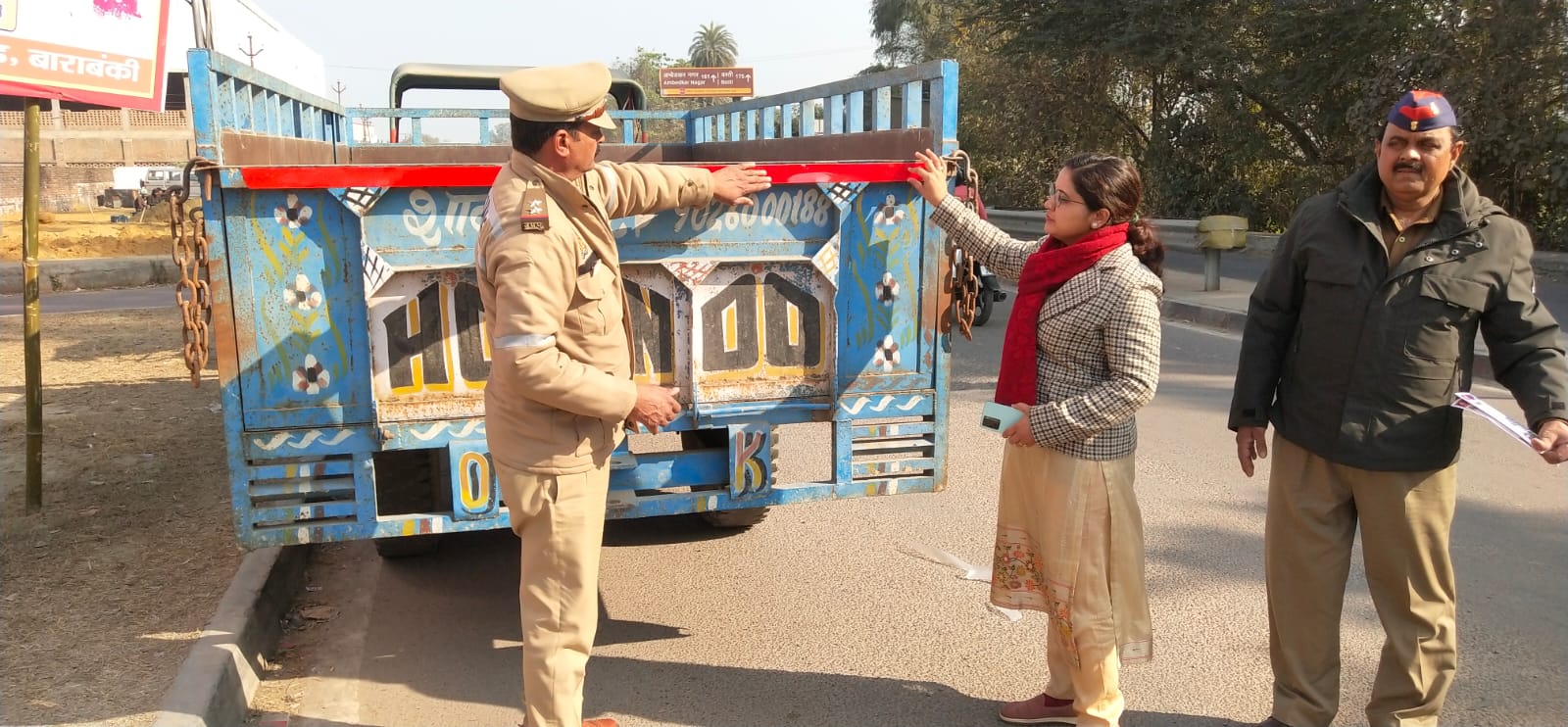 वही यात्री/मालकर अधिकारी रवि चन्द्र त्यागी की टीम ने लखनऊ-अयोध्या हाइवे पर स्थित अहमदपुर टोल प्लाजा पर बिना फिटनेस, ओवरलोड़, बकाया टैक्स मिलने पर 4 वाहनो को सीज कर दिया तथा बिना हेलमेट-सीटबेल्ट वाले 13 वाहनो के चालान किये गए। अभियान के दौरान पीटीओ ने बिना रेटो रिफ्लेक्टर टेप के गुजर रहे टैक्टर-ट्राली चालक को टेप लगवाने एंव नियमो का पालन करने की अपील भी की।