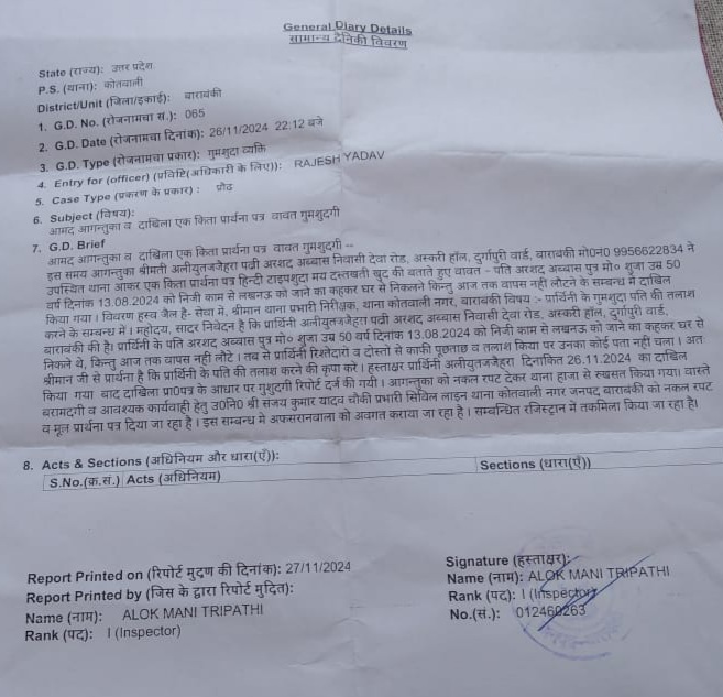 अरशद के लापता होने के करीब तीन महीने बाद अधिकारियों के हस्तक्षेप से दिनांक 26 नवंबर 2024 को नगर कोतवाली पुलिस ने खानापूर्ति करते हुए गुमशुदगी तो दर्ज कर ली, लेकिन न तो उसमें सूदखोरों का जिक्र किया और न ही अरशद को खोजने में कोई दिलचस्पी दिखाई गयी। नतीजतन गुमशुदगी दर्ज होने के चार महीने बाद भी अरशद का कोई सुराग नही लग सका है। अरशद जिंदा है या उन्होंने आत्महत्या कर ली अथवा सूदखोरों द्वारा उन्हें ठिकाने लगा दिया गया पुलिस के पास इनमें से किसी भी सवाल का जवाब नही है। गौरतलब है कि बीते कुछ माह पहले ही सूदख़ोरो के चंगुल में फंसकर  नगर के प्रतिष्ठित व्यापारी व भाजपा नेता ने अपने लखनऊ स्थित अपने आवास पर गोली मारकर आत्महत्या कर ली थी। अब देखना है कि जनपद में सूदखोरों के विरूद्ध स्थानीय पुलिस क्या कार्यवाही करेगी या सूदखोरों के चंगुल में फंसकर मजदूर पेशा व्यक्ति इसी तरह बर्बाद होते रहेंगे।