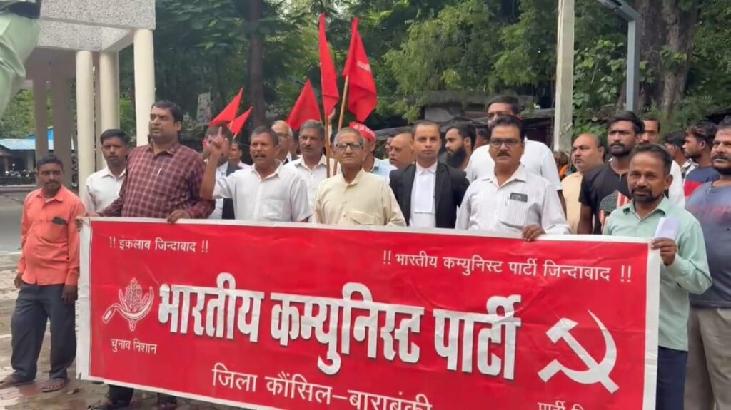 आज 9 जुलाई, 2025 को भारतीय कम्युनिस्ट पार्टी (भाकपा) की बाराबंकी इकाई ने विभिन्न श्रमिक, किसान और कर्मचारी संगठनों द्वारा आयोजित ‘भारत बंद’ के समर्थन में जोरदार प्रदर्शन किया। नारेबाजी करते कलेक्ट्रेट पहुंचे पार्टी कार्यकर्ताओं ने जिलाधिकारी बाराबंकी के माध्यम से महामहिम राष्ट्रपति को एक 15 सूत्रीय ज्ञापन सौंपा, जिसमें केंद्र सरकार की नीतियों पर गंभीर सवाल उठाए गए।