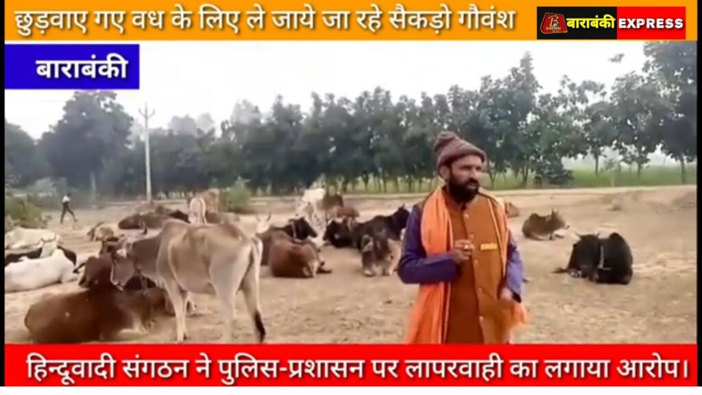 असंद्रा थाना क्षेत्र के बबुरी गांव निवासी श्रीराम सेवा समिति के राष्ट्रीय अध्यक्ष डीएनएस त्यागी ने बताया कि सोमवार दोपहर गांव के बाहर करीब 200 से अधिक आवारा गौवंश को बाहरी राजस्थान प्रांत के निवासी श्रीराम आदि के द्वारा खदेड़ कर एकत्र किया जा रहा था। गौवध की आशंका होने पर इसकी सूचना स्थानीय पुलिस समेत जनपद के उच्च अधिकारियों को दी। लेकिन कई घंटे बीतने के बाद भी मौक़े पर पुलिस नही पहुंची। कई बार फोन लगाने के बाद जब पुलिस मौके पर पहुंची तो 08 महिलाओ व दो पुरुषों को पुलिस की कस्टडी में दिया गया, परंतु पुलिस वालों ने उनको छोड़ दिया। बताया कि सब भाग गए। उसके बाद वहां से 3 किलोमीटर दूर पर फिर हम लोगों ने एक महिला और पुरुष को पकड़ कर पुलिस के हवाले किया। जिन्हें पुलिस अपने साथ ले गई। मौक़े पर गाय, सांड व बछड़े सब घूम रहे हैं लेकिन कोई सक्षम अधिकारी नहीं पहुंचा और ना गौवंश को गौशाला के लिए ले जाया गया।