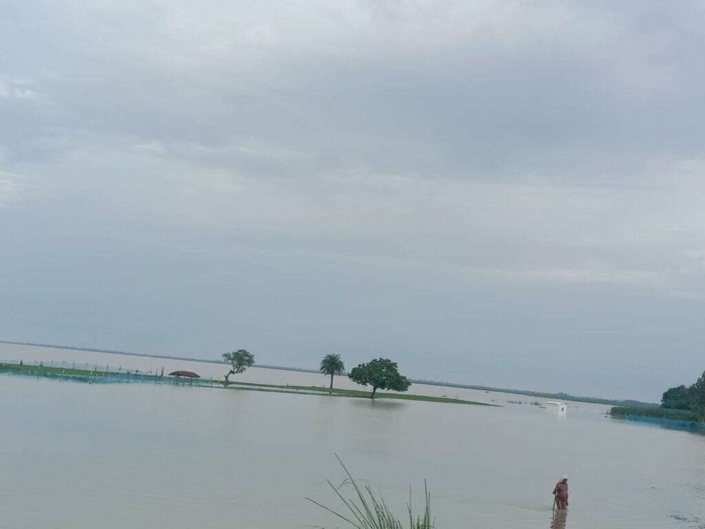 बाराबंकी में सरयू (घाघरा) नदी का जलस्तर खतरे के निशान से 48 सेमी ऊपर, नेपाल से छोड़े गए पानी से बाढ़ का खतरा गहराया, खेतों में पानी भरने से फसलें बर्बाद, प्रशासन अलर्ट मोड पर।