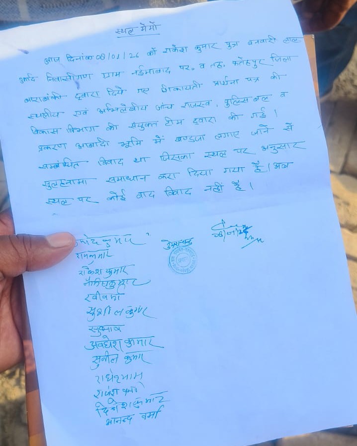 संयुक्त टीम ने दोनों पक्षों के बीच सुलह-समझौता कराकर मामला शांत कराया और इसके बाद टीम गांव से वापस लौट गई। लेकिन ग्रामीणों का आरोप है कि टीम के गांव से बाहर निकलते ही रज्जू लाल, उसकी पत्नी रजनी देवी और दामाद ने फिर से दबंगई दिखाते हुए सरकारी खड़ंजे को दोबारा उखाड़ दिया, जिससे स्थिति फिर तनावपूर्ण हो गई।