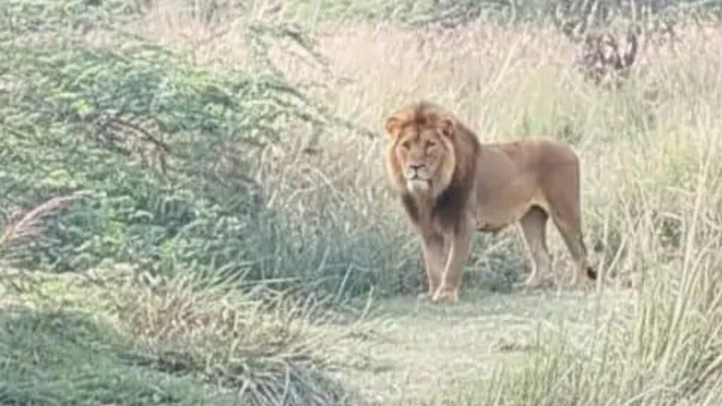 तस्वीर में दावा किया गया कि देवा रेंज के शाहपुर आरक्षित वन क्षेत्र में बब्बर शेर घूमता देखा गया है।