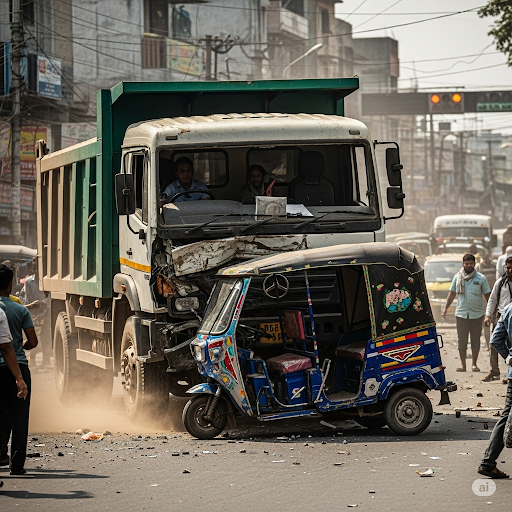 दूसरी घटना: डंपर ने ई-रिक्शा को मारी टक्कर, महिला व बच्चा घायल