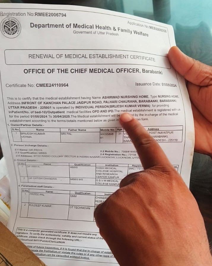 अस्पताल संचालक बृजेश कुमार वर्मा का कहना है कि उन्होंने 5 जून 2025 को रिन्यूअल के लिए आवेदन किया है, लेकिन स्वास्थ्य विभाग उन्हें दौड़ा रहा है। और तो और, जब जिले के मुख्य चिकित्सा अधिकारी (CMO) से यह पूछा गया कि रजिस्ट्रेशन खत्म होने के बाद भी अस्पताल कैसे चल रहा है, तो उनका जवाब चौंकाने वाला था: “हाँ, क्यों नहीं! यदि रिन्यूअल के लिए अप्लाई कर दिया है तो क्यों नहीं संचालन करेंगे?” यह जवाब विभाग की मंशा पर गंभीर सवाल खड़े करता है।