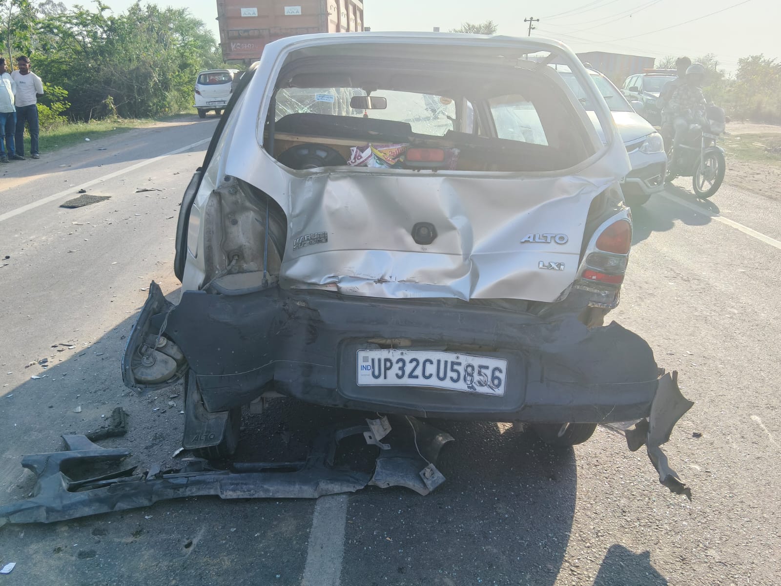 टक्कर इतनी जबरदस्त थी कि कार बुरी तरह क्षतिग्रस्त हो गई। हादसे के बाद अज्ञात वाहन चालक मौके से फरार हो गया।