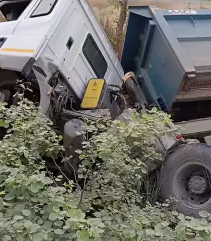 इसी मार्ग पर दूसरा हादसा कुर्सी क्षेत्र के निंदूरा गांव के पास हुआ। यहां मौरंग से लदा एक डंपर बाइक सवार को बचाने के प्रयास में अनियंत्रित होकर सड़क से नीचे खाई में पलट गया।