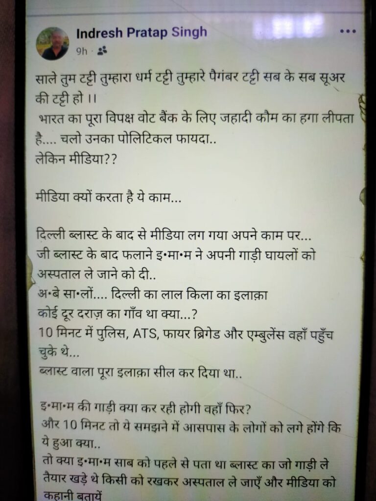 शिकायतकर्ता उसामा अंसारी ने पुलिस अधीक्षक बाराबंकी को दिए अपने शिकायती पत्र में बताया कि इन्द्रेश प्रताप, निवासी राजकमल रोड, बाराबंकी, पूर्व में सपा युवजन सभा का जिलाध्यक्ष रह चुका है। उन्होंने कहा कि यह व्यक्ति अपराधिक प्रवृत्ति का है और सोशल मीडिया पर मुस्लिम समाज एवं पैगंबरों के विरुद्ध अपमानजनक, झूठी और भड़काऊ टिप्पणियां करता रहता है।