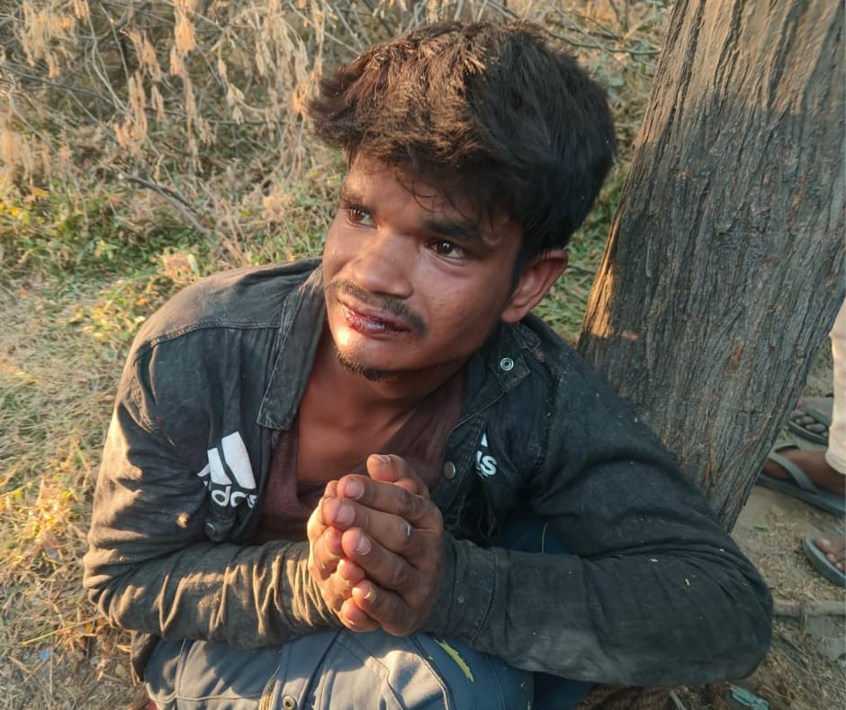 ग्रामीणों ने पकड़कर की कुटाई