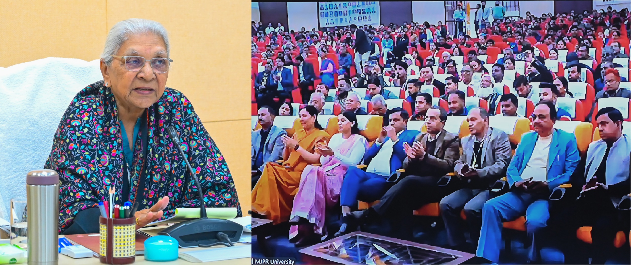 राज्यपाल महोदया ने विश्वविद्यालय द्वारा अपनाए गए दिव्यांग स्कूल की सराहना करते हुए कहा कि जनपद में दिव्यांग बच्चों का सर्वेक्षण कर यह पता लगाने का प्रयास किया जाना चाहिए कि दिव्यांग बच्चों के जन्म में वृद्धि हुई है या कमी आई है। इस आंकड़े को बेटियों को दिखाकर उन्हें जागरूक किया जाना चाहिए कि स्वस्थ जीवनशैली अपनाने से ही स्वस्थ संतानों का जन्म संभव होगा। इसके अलावा, उन्होंने दिव्यांग बच्चों से संबंधित शोध करने और इसे स्कूलों एवं कॉलेजों तक पहुंचाने के निर्देश दिए। राज्यपाल महोदया ने बाल विवाह और दहेज प्रथा जैसी सामाजिक कुरीतियों के खिलाफ जागरूकता फैलाने के लिए विश्वविद्यालयों और महाविद्यालयों को साइकिल रैली निकालने का भी निर्देश दिया। उन्होंने कहा कि दहेज प्रथा के कारण कई बेटियां परेशान हैं और कई महिलाएं व उनके छोटे बच्चे जेल में रहने को मजबूर हो जाते हैं। विद्यार्थियों को समाज में जागरूकता फैलाने के लिए आगे आना चाहिए और स्वयं संकल्प लेना चाहिए कि वे न दहेज लेंगे और न ही इसका समर्थन करेंगे। उन्होंने कहा कि जब विद्यार्थी इस प्रतिज्ञा को अपनाएंगे, तभी समाज में सकारात्मक परिवर्तन आएगा।