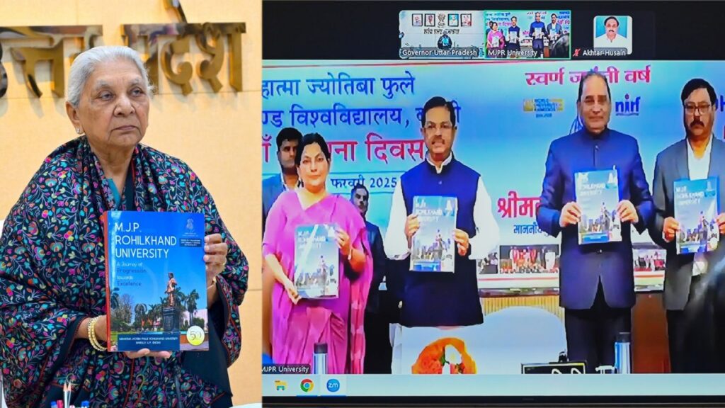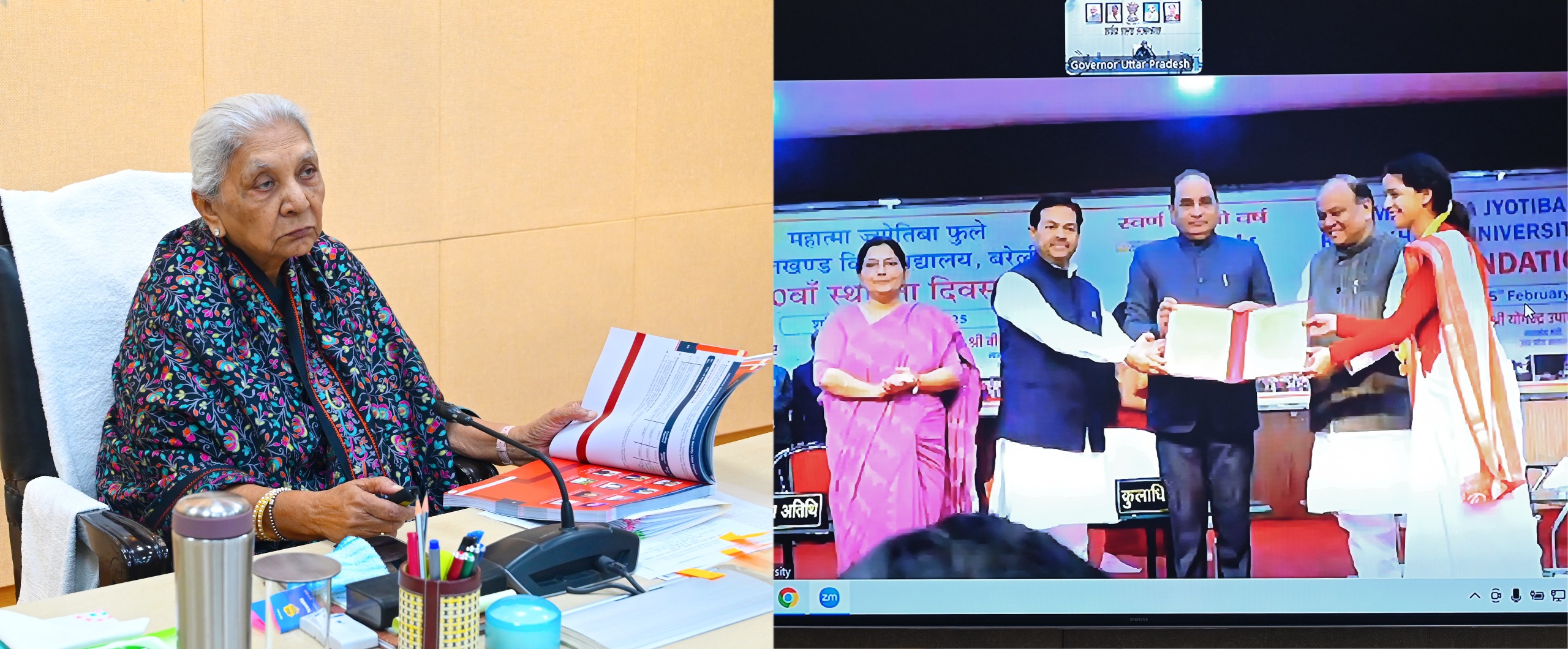 प्रदेश की राज्यपाल तथा राज्य विश्वविद्यालयों की कुलाधिपति श्रीमती आनंदीबेन पटेल की अध्यक्षता में आज महात्मा ज्योतिबा फुले रूहेलखंड विश्वविद्यालय, बरेली का स्वर्ण जयंती समारोह सम्पन्न हुआ। कार्यक्रम में राज्यपाल महोदया वर्चुअली शामिल हुईं। इस अवसर पर उन्होंने विश्वविद्यालय के स्वर्ण जयन्ती द्वार का उद्घाटन किया तथा विश्वविद्यालय की स्वर्ण जयन्ती स्मारिका का विमोचन भी किया। कार्यक्रम में विश्वविद्यालय के विद्यार्थियों को उत्कृष्ट अकादमिक प्रदर्शन हेतु उपाधियाँ, पदक तथा खेल क्षेत्र में उत्कृष्ट उपलब्धियों के लिए पुरस्कार प्रदान किए गए।
