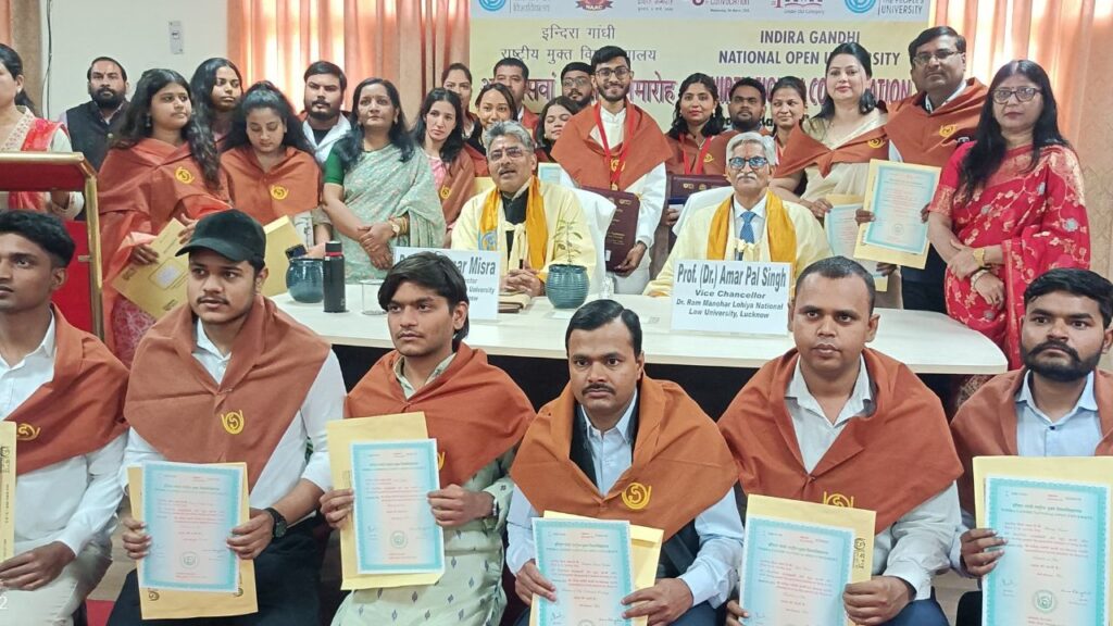 समारोह के विशिष्ठ अतिथि प्रो० डॉ अमर पाल सिंह, कुलपति, डॉ राम मनोहर लोहिया राष्ट्रीय विधि विश्वविद्यालय, लखनऊ ने अपने दीक्षान्त भाषण में उपाधि प्राप्त विद्यार्थियों को बधाई देते हुए कहा कि उपाधि प्राप्त करने के पश्चात् विद्यार्थियों के पास रोजगार एवं उद्यम के अनेक अवसर प्राप्त होंगे परन्तु साथ साथ नई चुनौतियां तथा सामाजिक एवं आर्थिक जटिलतायें भी आयेंगी जिनका समाधान छात्रों को अपने अर्जित ज्ञान तथा अनुभव के आधार पर करना होगा। उन्होनें इग्नू द्वारा सुविधाहीन, शिक्षा से वंचित लोगों को शिक्षा द्वारा विकास की मुख्य धारा से जोड़ने के लिए विश्वविद्यालय द्वारा किये जा रहे कार्यों की सराहना की। उन्होनें कहा कि राष्ट्रीय शिक्षा नीति एनईपी 2020 में विश्व स्तरीय उच्च शिक्षा पारिस्थितिकी तंत्र के विकास के लिए आवश्यक पांच मूलभूत स्तंभों को सूचीबद्ध किया गया है। ये हैं छात्र केन्द्रितता, अनुसंधान और नवाचार, संकाय, अन्तर्राष्ट्रीयकरण और डिजिटल शिक्षा। इग्नू सभी को शिक्षा प्रदान करने के लिए इन रणनीतिक स्तंभों के आधार पर प्रशंसनीय कार्य कर रहा है। उन्होनें उपाधि धारकों को उद्यमशील बनने के लिए प्रोत्साहित किया।